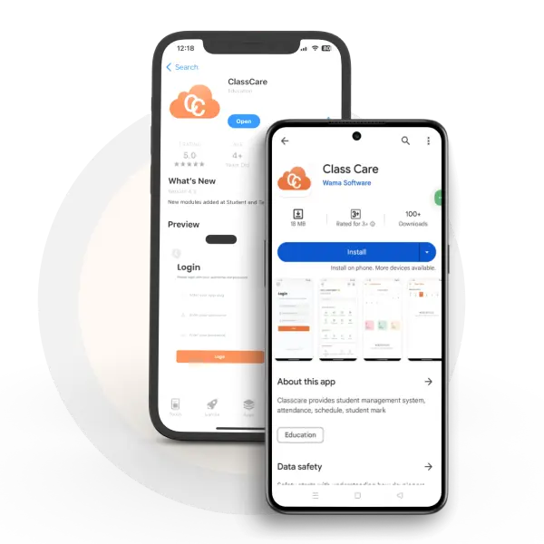 Our Class Care mobile apps provide school admins, faculty, and student-parents with secure, role-based access to essential information, ensuring everyone stays informed and connected. Additionally, we offer white-label customization, allowing schools to tailor the app to their unique branding needs.